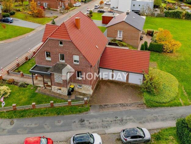 Das Anwesen umfasst ein geräumiges Haupthaus mit angrenzenden Stallungen, eine freistehende Scheune, einen ehem. Treckerschuppen und einen Garagenkomplex. Das Haupthaus wurde ca. 1922 errichtet und c...