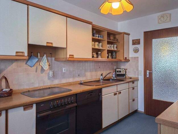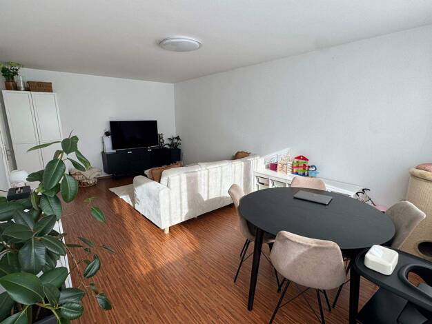 Die Wohnung hat eine Teil-Dachschräge, wodurch sie eine total angenehme und gemütliche Atmosphäre bekommt. Die leicht abgetrennte Küche vermittelt den Eindruck, als wäre sie ein separater Raum, und g...