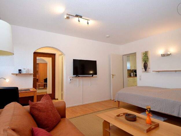 Diese schöne 1,5-Zimmer-Wohnung liegt im UG/EG (Hanglage) eines Einfamilienhauses in Bad Bellingen mit separatem Eingang und Freisitz. Die Wohnung verfügt über ein Wohn-/ Schlafbereich, eine Wohnküche, ein Badzimmer und einen Abstellraum. Der Wohn-/Schlafbereich bietet ein gemütliches Zweisitzer-Sofa, einen Sessel, einen Schreibtisch, ein TV-Gerät (Smart-TV), einen großen Kleiderschrank und ein französisches Bett (120/200). Von hier aus gelangt man in die separate Küche, die komplett ausgestatt...