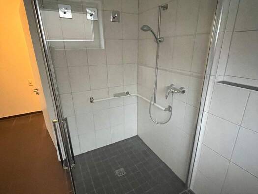 Die moderne Wohnung mit Balkon hat eine Gesamtfläche von knapp 40 m² und bietet somit einen großzügigen Wohnraum mit moderner Einbauküche, ein Schlafzimmer und ein Tageslichtbad. Geheizt wird über eine Luft-Wärme-Pumpe. Im Untergeschoss steht Ihnen ein Abstellraum und ein allgemeiner Wasch und Trockenraum zur Verfügung. Den Eingang erreichen sie von Ihrem KFZ-Außenstellplatz über barrierefrei über einen überdachten Laubengang. Das Mehrfamilienhaus zeichnet sich durch eine hochwertige Holzbauwei...