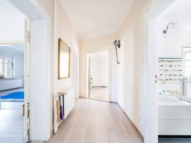 Kurzbeschreibung Wohnen in ehemaliger Wassermühle Objekt Zur Vermietung steht eine in einer ehemaligen Wassermühle, in ruhiger Ortsrandlage befindliche Wohnung. Die im Obergeschoss gelegene Wohnung unterteilt sich in Wohnzimmer, Esszimmer, Schlafzimmer, Kinderzimmer, DU/WC, 2 Flure, Abstellraum und Balkon. Ferner gehört eine Garage zum Mietangebot. Beheizt wird die Wohnung durch eine Kombination Luftwärmepumpe/Ölheizung. Eine ältere Einbauküche kann genutzt werden oder nach eigenen Geschmack er...