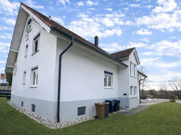 Massiv erstelltes WOHNHAUS MIT ZWEI 4-ZIMMER-WOHNUNGEN, gepflegtem GARTEN und einer TIEFGARAGE. Das 1961 erstellte Gebäude wurde 1999 durch den Anbau eines Wintergartens in Richtung Süden erweitert u...