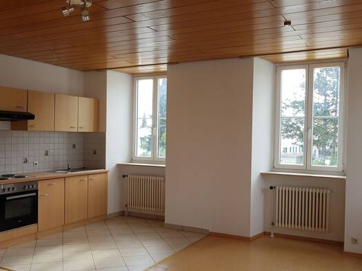 Objektbeschreibung Diese Maisonette-Wohnung befindet sich im 1. und 2. Dachgeschoß in einem 1998 bis 2000 vollständig und hochwertig kernsanierten Gebäude im Zentrum von Hüfingen und eignet sich für ...