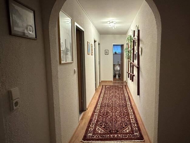 Die 5-Zimmerwohnung liegt im 3. Obergeschoss einer Wohnanlage aus dem Jahr 1970. Die 110 m² Wohnfläche verteilen sich auf eine offene Küche mit großem Wohn-Essbereich, einem Bad, drei Schlafzimmer, e...