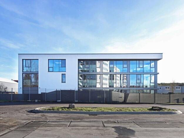 EG/1. OG/2. OG Bürofläche insgesamt ca. 540 m² inkl. ca. 150 m² Nebenfläche pro Etage mit Teeküche, Damen-/Herren-WC, Aufzug über alle Ebenen. Massivbauweise, bodentiefe Fensterelemente, Kunststoff i...