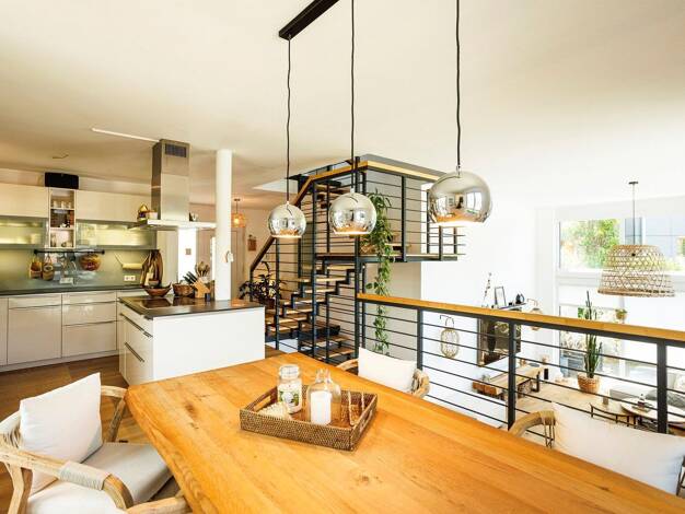 Dieses exklusive Penthouse erstreckt sich über ca. 150 m² Wohnfläche und bietet ein außergewöhnliches Wohnambiente mit hohem Komfortanspruch. Die großzügige Raumgestaltung, kombiniert mit einer hochwertigen Möblierung, schafft eine stilvolle und zugleich funktionale Wohnlösung auf Zeit. Die Wohnung verfügt über insgesamt 6 Schlafplätze für bis zu 10 Personen und eignet sich ideal für Geschäftsreisende, Familien oder anspruchsvolle Mieter, die eine vollständig ausgestattete Unterkunft suchen. Ei...