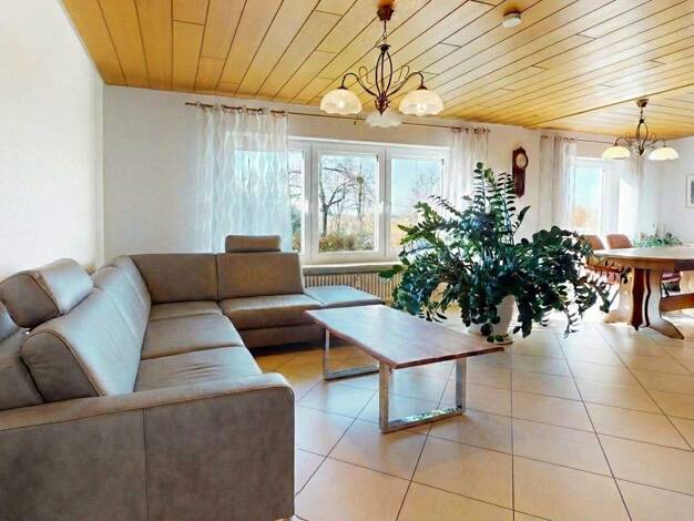 Das großzügige Einfamilienhaus besticht durch die modernen, großflächigen Fenster, die viel Licht ins Innere lassen und zum Verweilen mit Familie und Freunden einladen. Wohnen, Essen und Kochen bilde...