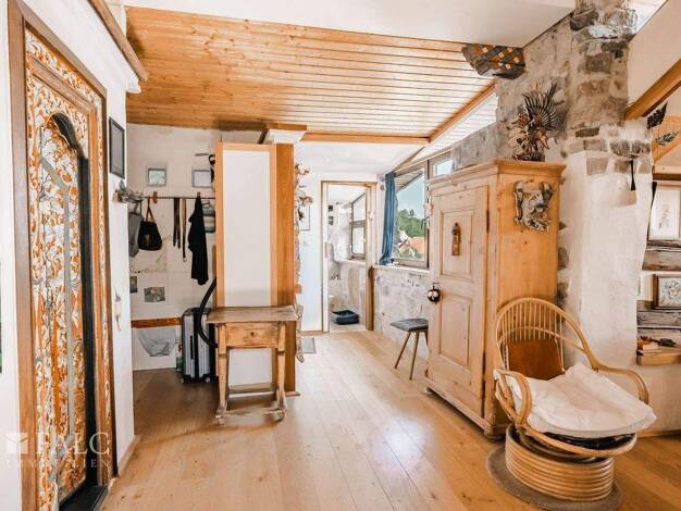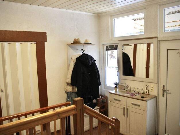 Dieses Haus aus dem Baujahr 1956 bietet rund 125 m² Wohnfläche und insgesamt 5 Zimmer, verteilt auf Erdgeschoss und Obergeschoss. Der Rundgang beginnt im Erdgeschoss im Flur, von dem aus die Räume pr...