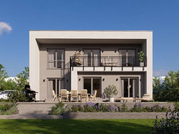 Objektbeschreibung Das „Aura 125“ überzeugt mit seiner cleveren Bauweise und flexiblen Gestaltungsmöglichkeiten. Dank seiner kompakten Außenmaße findet dieses Haus gerade auf kleinen und schmalen Gru...