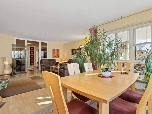 Die familienfreundliche 4-Zimmer-Wohnung befindet sich im 1. Obergeschoss einer gepflegten Wohnanlage mit acht Einheiten. Sie verfügt über eine großzügige Diele, ein Gäste-WC sowie eine hochwertige H...