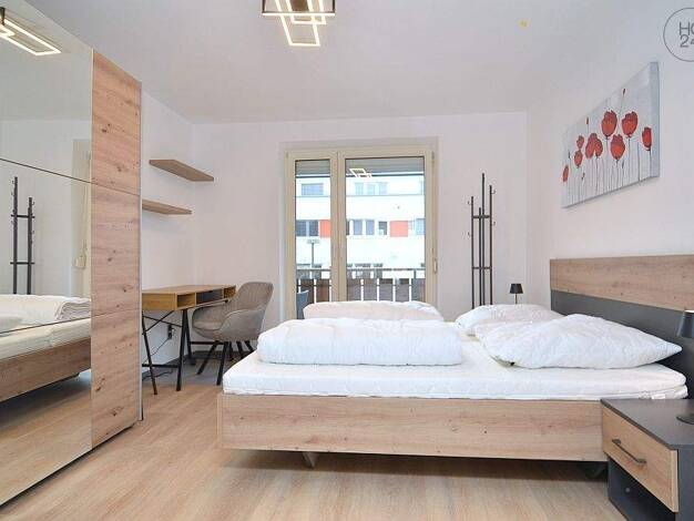 Ideal zu Siemens: Modern und exklusiv möblierte 2-Zimmer-Wohnung mit WLAN und Balkon und Stellplatz im beliebten Stadtteil in einem gepflegten Mehrfamilienhaus in Erlangen. Die Möblierung des Wohn-Es...