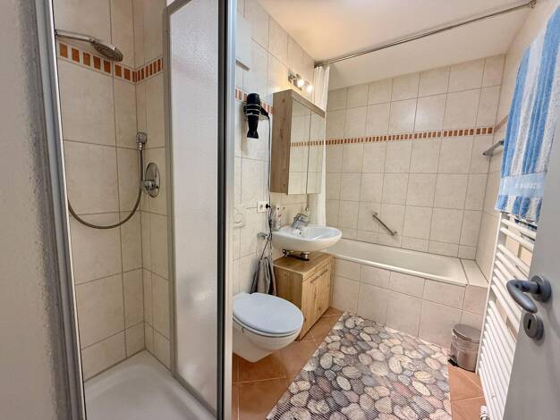 Sonnige, junge 2-Zimmer-Wohnung mit viel Wohnqualität, zentrale Eingangsdiele, Bad mit Wanne und separater Dusche, Schlafzimmer mit eigenem, geschützten Balkon - ideal zum Betten lüften und Wäsche au...