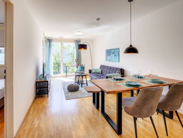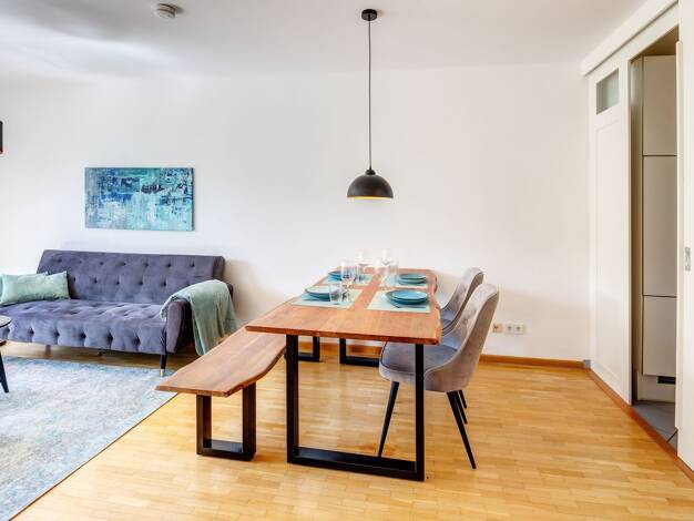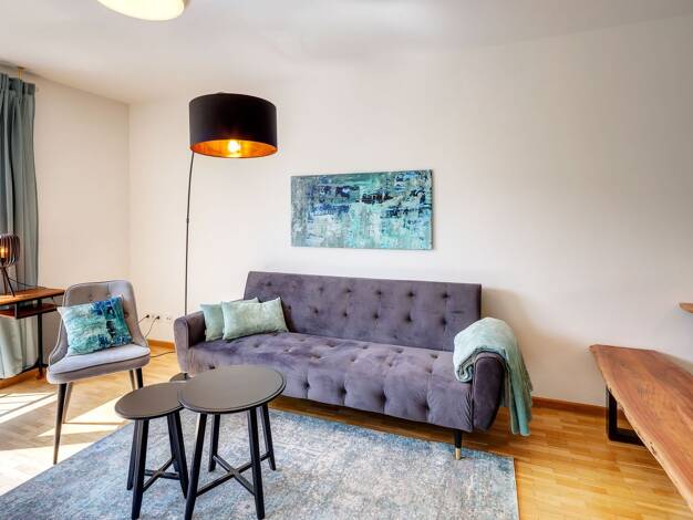 Weitere Informationen, viele hochauflösende Fotos und ein Video zu diesem Objekt finden Sie unter: https://www.mrlodge.de/wohnungen/detailansicht/11871/ See offer in English: https://www.mrlodge.com/search/detailed-view/11871/ Zimmer: Kombiniertes Wohn-/Schlafzimmer:, Singlebett 140 x 200 cm, Sofa, Kleiderschrank, Sideboard, Bad mit Dusche Bodenbelag: Feinsteinzeugfliesen, Fußbodenheizung Möblierung: schön und hell eingerichtet Küche: Einbauküche, mit Fenster, Kühlschrank mit Gefrierfach, Spülm...