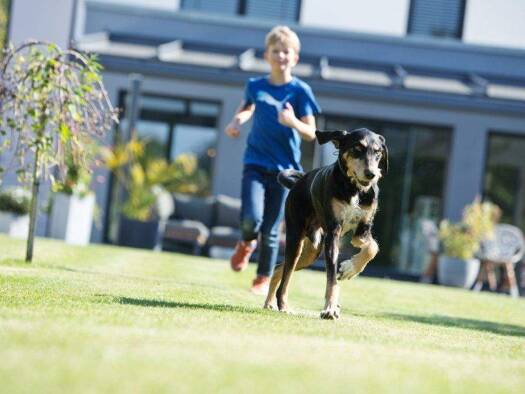 Eine charmante Außengestaltung und viel Platz im Innern: Dieses Fertighaus ist ein wahrer Wohntraum für eine vierköpfige Familie. Mit dem klassischen Satteldach - in diesem Planungsbeispiel dunkel ei...