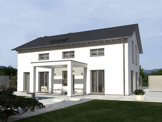 Klassisch und stilvoll präsentiert sich das 2-geschossige Einfamilienhaus Design 13. Unter dem Satteldach vereinen sich moderne Architektur und höchster Wohnkomfort. Im Entrée trennt die offene Trepp...