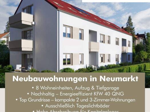 Leben.Wohnen.Wohlfühlen. In der Feßmeyerstr. 6 in Neumarkt wird ein modernes Mehrfamilienhaus mit lediglich 8 Wohneinheiten im höchsten Energiesparhaus-Standard KfW 40 QNG gebaut. Entdecken Sie die Z...
