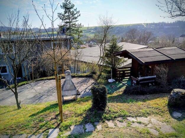 Anwesen (Bj. 1958) mit fantastischer Aussicht, weitläufigem Grundstück (2440qm) mit Baumbestand. Die angebaute Gewerbeeinheit (Bj. 1975, Erweiterung 1996) könnte an den vorherigen Eigentümer vermiete...