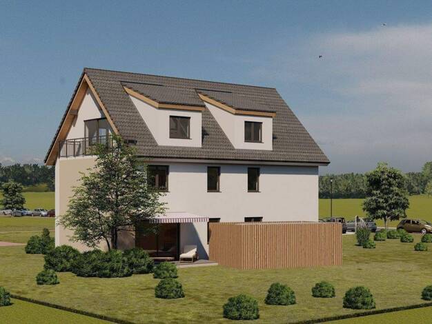 Auf dem nach Süden ausgerichteten Grundstück entsteht ein Haus mit 7 Wohnungen und 11 Stellplätzen im förderfähigen KfW-40 Standard. Im Erd- und Dachschoss befinden sich je zwei Wohnungen, im Oberges...