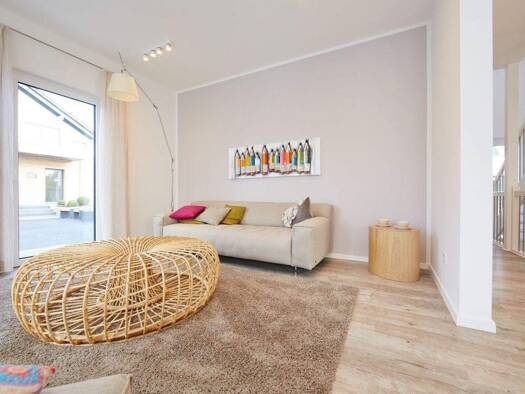 Das Home 4 überzeugt durch eine großzügige und durchdachte Raumgestaltung. Der helle Ess- und Wohnbereich im Erdgeschoss schafft eine einladende Atmosphäre zum Entspannen. Im Obergeschoss erwartet Si...