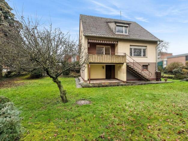 Dieses großzügige Einfamilienhaus aus ca. 1960 bietet mit einer Wohnfläche von ca. 200 m² und insgesamt 5 Zimmern eine ideale Grundlage für Familien, die viel Platz benötigen oder sich ihren persönli...