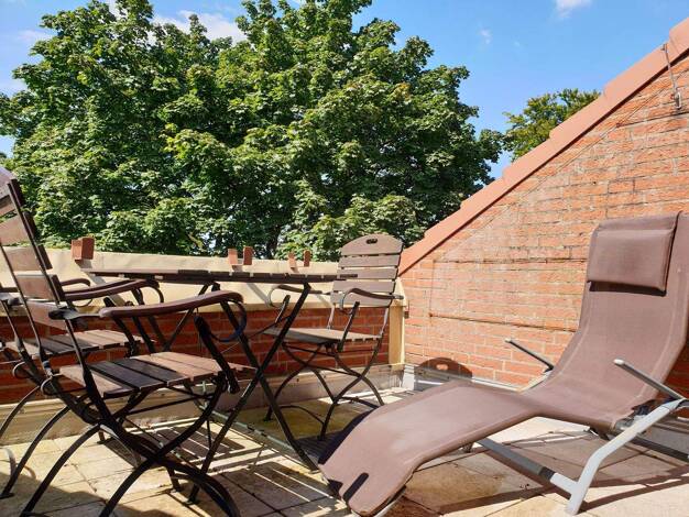 Dieses außergewöhnliche Penthouse erstreckt sich über die gesamte vierte Etage (ohne Aufzug) eines gepflegten, vierstöckigen Mehrfamilienhauses und bietet auf rund 100,67 m² Wohnfläche ein großzügige...