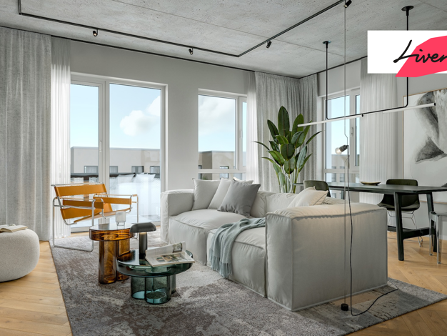 2 Zimmer und 2 Balkone in klimafreundlichem Effizienzhaus 40 mit KfW-Förderung. Gut geschnittene, barrierefreie und altersgerechte Wohnung mit zwei Süd-West-Balkonen, geräumigem Duschbad, Arbeits- u...