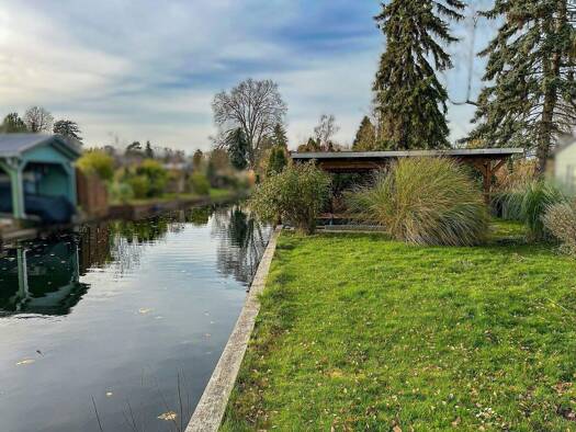 Direkt am alten Spreearm, dort, wo die Spree ihren ruhigen, glitzernden Lauf nimmt, wartet eine Villa, die mehr ist als ein Zuhause - sie ist ein Ort zum Ankommen, Träumen und Genießen. Diese wunders...