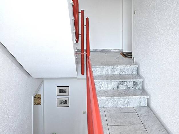 Die Maisonettewohnung verfügt über zwei Ebenen mit einem grossen Balkon nach Süd-Osten. In der unteren Ebene der Wohnung erschließen sich über einen Flur Küche,Wohnzimmer mit Eßbereich,ein grosses Schlafzimmer,Bad und Gäste-WC. Im oberen Luftraum-Wohnbereich findet sich ein weiteres Schlaf- oder Arbeitszimmer sowie eine großzügige Galerie. Ausstattung: Gäste-WC mit fl. Warmwasser,Bad mit Dusche,Wanne und WC, Kellerraum mit Beleuchtung und Steckdose,gemeinsame,grosse Waschküche mit jeweils eigen...