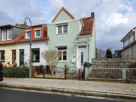 Bei der Immobilie handelt es sich um ein ca. 1928 errichtetes, massiv gebautes Reihenendhaus in gewachsener und sehr gefragter Wohnlage von Bremen. Das Haus wurde in den Jahren 2021 bis 2025 umfassen...