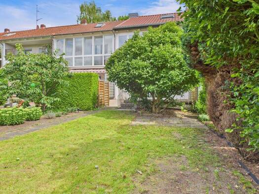 Reihenhäuser mit einem großzügigen Grundstück sucht man normalerweise vergebens, jedoch sieht es bei diesem Angebot anders aus: Sie erwartet ein großzügiger Garten, der fast das gesamte Haus umschlie...