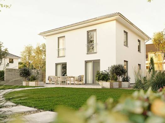 Stadtvilla Flair 124 Die kubische Form ist der Klassiker im Stadthausdesign und prägt auch das Aussehen unseres Stadthaus Flair 124. Im Inneren setzt sich der urbane Stil fort: der großzügige Wohn- u...