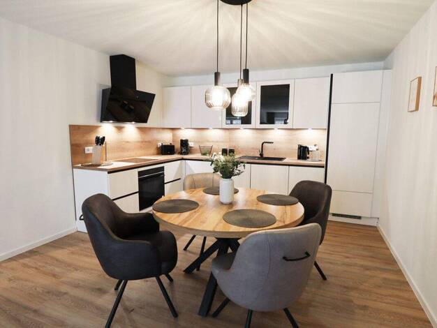 Diese liebevoll gepflegte und teilsanierte Ferienwohnung auf rund 52 Quadratmetern bietet ein besonderes Wohngefühl, das sofort berührt. Der Wohn- und Essbereich geht harmonisch in die moderne Küche ...