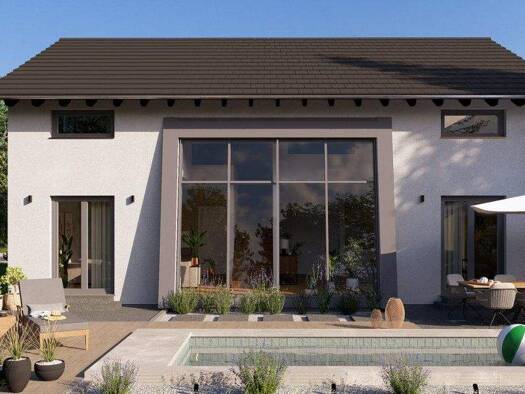 Das Haus ist auf einem realen Baugrundstück geplant oder auf einem Grundstück in einer Planungsphase. Die Bilder zeigen ggf. Extras, die im Rahmen des Bebauungsplans noch geprüft werden müssen. Bitte...