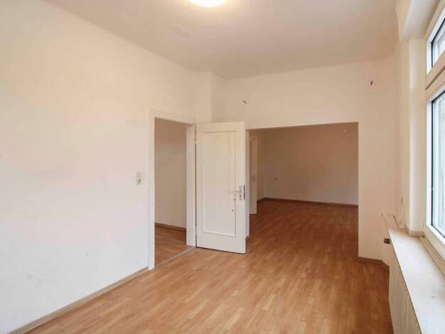 Die Wohnung befindet sich in einem Wohn- und Geschäftshaus mit unmittelbarer Nähe zur Fussgängerzone und zum Bahnhof. Die Wohnung verfügt über 1 Schlafzimmer, ein großes Wohnzimmer, Küche und Bad mit Dusche und Anschluss für die Waschmaschine. Der Hausflur wird von einer Reinigungsfirma gepflegt. Die Küchenzeile kann vom Mieter übernommen werden (Herd, Backofen, Warmwasserspeicher und Dunstabzugshaube). VB 300.