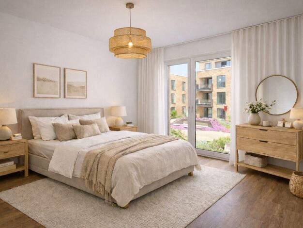 Diese hochwertige und exklusive 3-Zimmer-Wohnung befindet sich im Erdgeschoss und bietet auf ca. 76m² Wohnfläche modernen Wohnkomfort auf höchstem Niveau. Die Wohnung garantiert Ihnen ein rundum neues, stilvolles Zuhause mit einer Ausstattung, die höchsten Ansprüchen gerecht werden. Der lichtdurchflutete Wohn- und Essbereich mit offener, moderner Einbauküche bildet das Herzstück der Wohnung. Die Küche ist mit hochwertigen Markengeräten ausgestattet und fügt sich harmonisch in das elegante Wohnk...