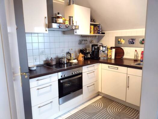 Die angebotene Wohnung ist Teil einer gepflegten Wohnanlage mit Erd- sowie Obergeschoss und befindet sich im 1. Stock. Sie verfügt über ein Dachstudio (ca. 40 qm) sowie WC und Abstellraum. Das Dachst...