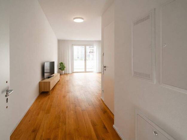 In VIERZIG549 profitieren alle Generationen von einem besonderen Konzept: Großzügige Grünflächen mit schattenspendenden Bäumen, Spielplätzen und Bänken ergänzen den hellen, offenen Stil der Straßen u...