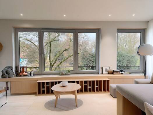 In absoluter Toplage, direkt am Kaiserswerther Markt und mit Blick auf den Rhein, befindet sich diese außergewöhnliche Maisonettewohnung. Die Wohnung wurde stilvoll renoviert und vereint modernen Wohnkomfort mit dem einzigartigen Charme des historischen Gebäudes. Auf rund 194 m² Wohnfläche präsentiert sich dieses Zuhause lichtdurchflutet, großzügig und bis ins Detail hochwertig gestaltet. Helle Farben, edle Materialien und ein offenes Raumkonzept schaffen eine einladende Wohnatmosphäre mit beso...