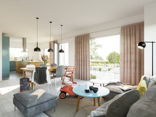 Unser TrendStyle 12.0 S vereint effiziente Planung mit individueller Wohnqualität. 125,79 m² Nettogrundfläche bietet Platz auf zwei Geschossen - für wundervolle Momente mit der Familie und mit Freund...