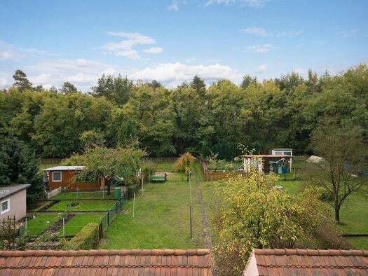 Unser Mietobjekt befindet sich in einem Vierparteienhaus und ist Teil des denkmalgeschützten Ensembles der Gartenstadt Lauta. Die Fassade mit grünen Fensterläden und grüner Hauseingangstür wirkt freu...