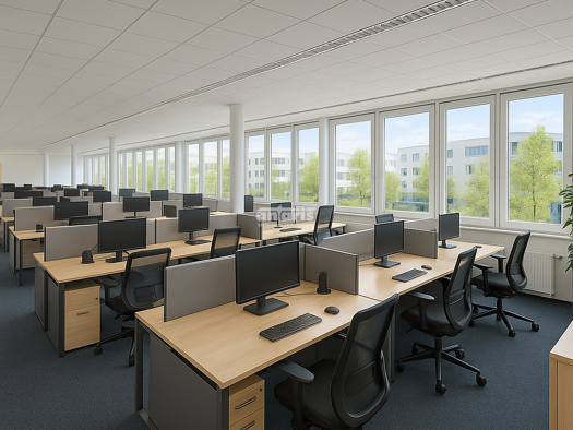 - Bürogebäude über 2 Etagen mit insgesamt ca. 4.750 m² - zz. aufgebaut für Callcenter-Nutzung - Gebäude etagenweise teilbar: EG ca. 2.450 und 1.OG ca. 2.300 m² - 2 große Teamräume (450 m²) auf jeder ...