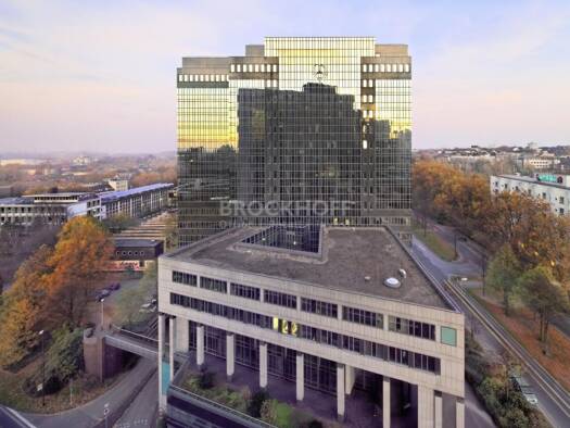 Die Bürofläche erstreckt sich über 285,5 m² im 14. Obergeschoss eines 1995 erbauten Bürogebäudes. Sie besticht besonders durch den hervorragenden Ausblick über Essen. Im Keller befindet sich die Tief...