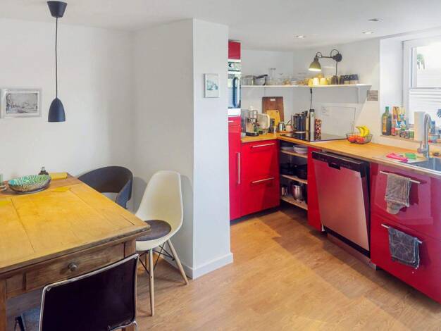 Diese moderne Maisonette-Wohnung befindet sich im 1.OG einer Doppelhaushälfte in Burg und ist aufgeteilt wie folgt: Das Wohnzimmer mit Küchenbereich und Balkon, ein Schlafzimmer, modernes Wannenbad m...