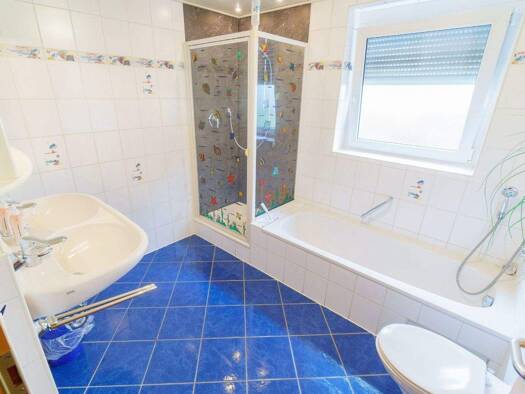 gepflegte 3 Zimmerwohnung im Obergeschoß eines nur 3 Familien-Hauses, sep. Küche (Einbauküche vorhanden), Tageslichtbad mit Dusche und Waschbecken. Im Bad Fliesenbelag, in den Wohn- und Schlafräumen ...