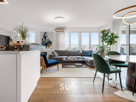 Dieses exklusive Penthouse überzeugt durch seine beeindruckende Großzügigkeit und luxuriöse Ausstattung. Der lichtdurchflutete Wohn- und Essbereich mit über 50 m² bietet ein stilvolles Ambiente für e...