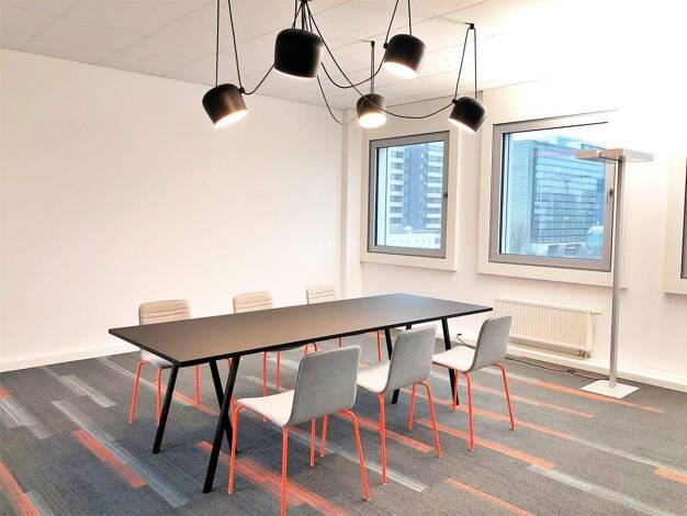 Das 1996 erbaute 8-geschossige Bürogebäude verfügt über einen ständig besetzten Empfangsbereich in der repräsentativen Empfangshalle. Über die zwei Aufzugsanlagen gelangt man zu den Etagen.