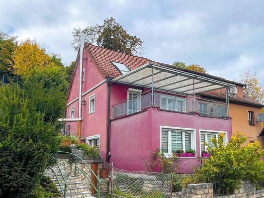 Wohnen, wo andere Urlaub machen - im fränkischen Paradies - "Fränkische Schweiz". Objektbeschreibung Das große, gepflegte, dreistöckige (EG, 1. OG und DG) Mehrfamilienwohnhaus, bietet eine sehr gepfl...