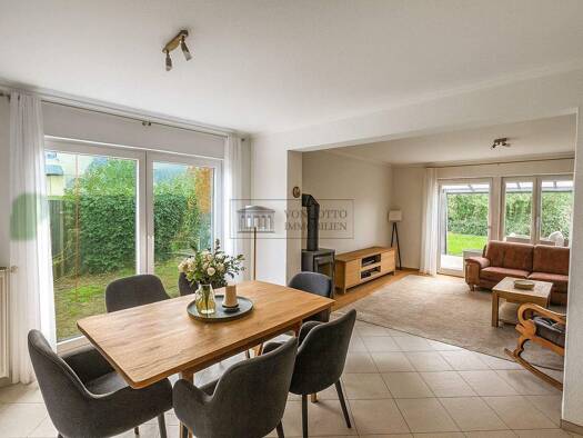 Beim Eintreten durch den Windfang spürt man sofort die einladende Atmosphäre des Hauses. Highlights sind die moderne Einbauküche, die harmonisch in den Essbereich übergeht und in den Wohnbereich münd...