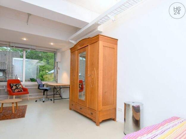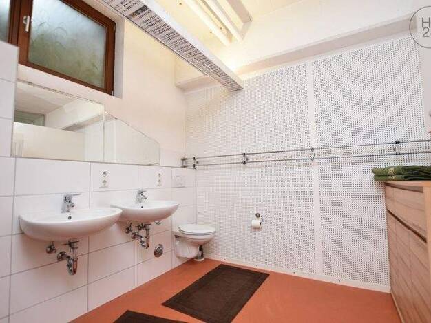 Die ca. 90 qm große 2-Zimmer-Wohnung wurde im Loft-Style ausgebaut und liegt im 1. OG eines Mehrparteienhauses in Ravensburg-Ost. Es gibt einen Wohn-Essbereich, Küche, Schlafzimmer und Bad. Wohn-Essbereich wurde mit einem Sofa, Sessel, Couchtisch, Esstisch mit Stühlen und einem Sideboard eingerichtet. Von hier aus haben Sie Zugang zum einem Wirtschaftsraum, der mit dem Badezimmer kombiniert wurde. Hier finden Sie Waschmaschine und Trockner, Putzutensilien, eine Dusche, 2 Waschbecken, Badezimmer...