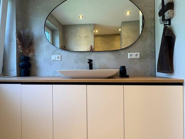 Die Doppelhaushälfte mit 165 m² Wohnfläche, welche aus einer früheren Scheune erbaut wurde, glänzt heute durch die Galerie und offenen Stockwerke mit einem einmaligen Schnitt und Grundriss: Im Erdges...